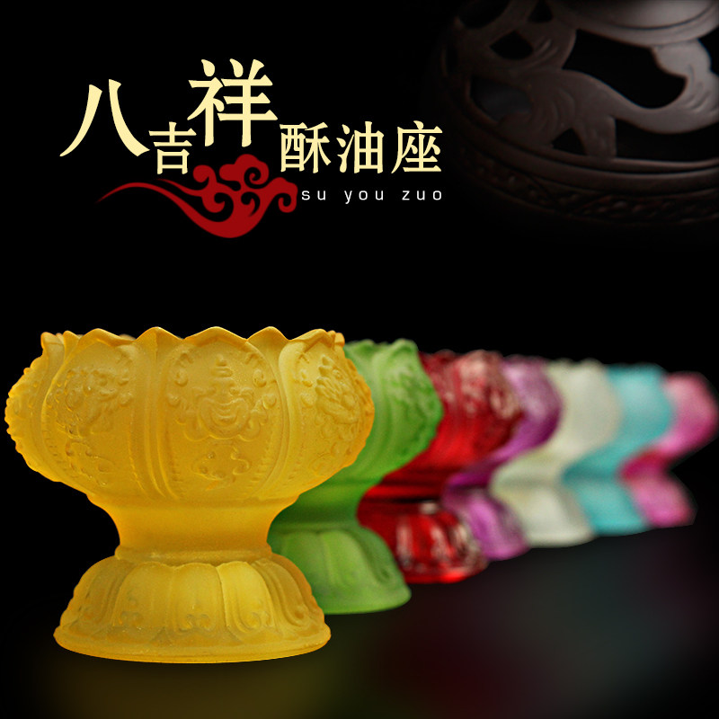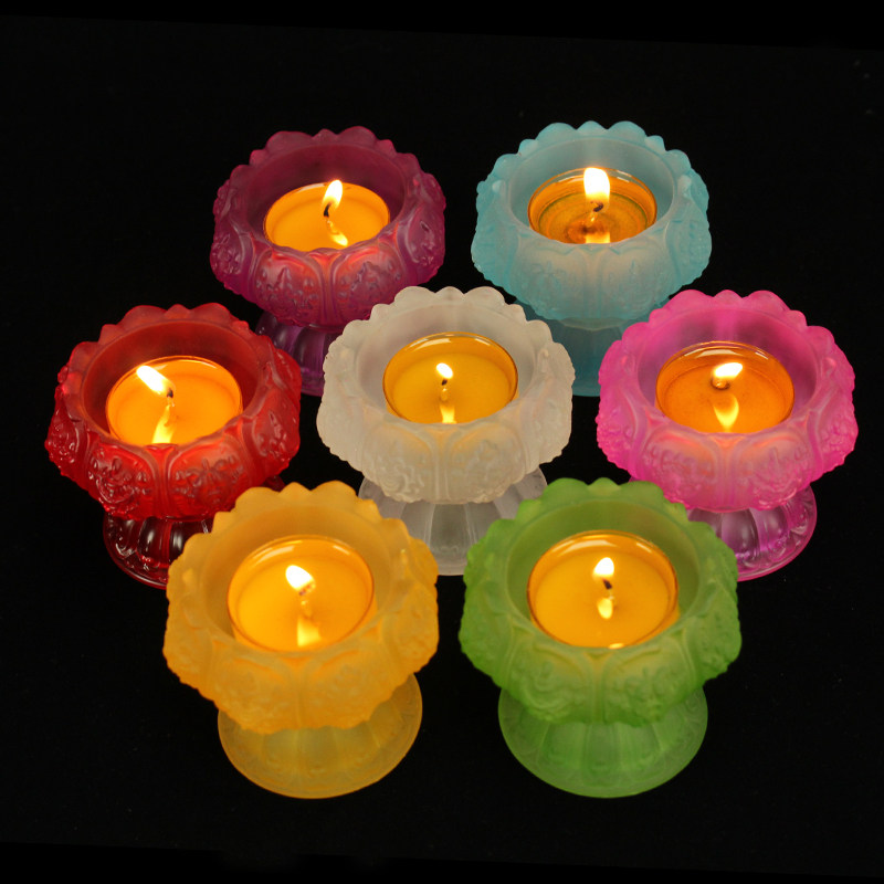 玻璃烛台 七彩酥油灯座莲花高脚琉璃酥油座灯盏长明灯