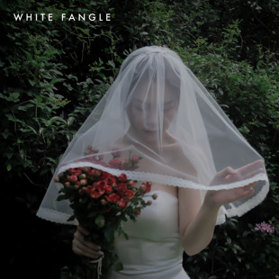 新娘双层蕾丝头纱 橙花 复古精致森系旅拍通透 FANGLE WHITE