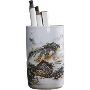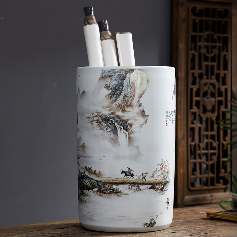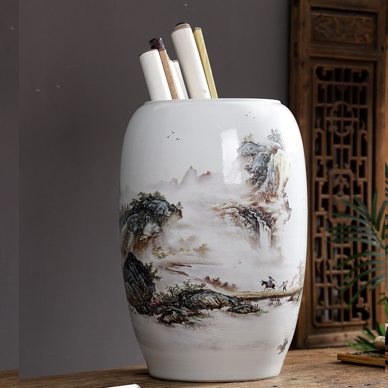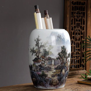 景德镇陶瓷书画筒字画卷轴收纳缸桶书房客厅装 饰花瓶瓷器摆件画缸