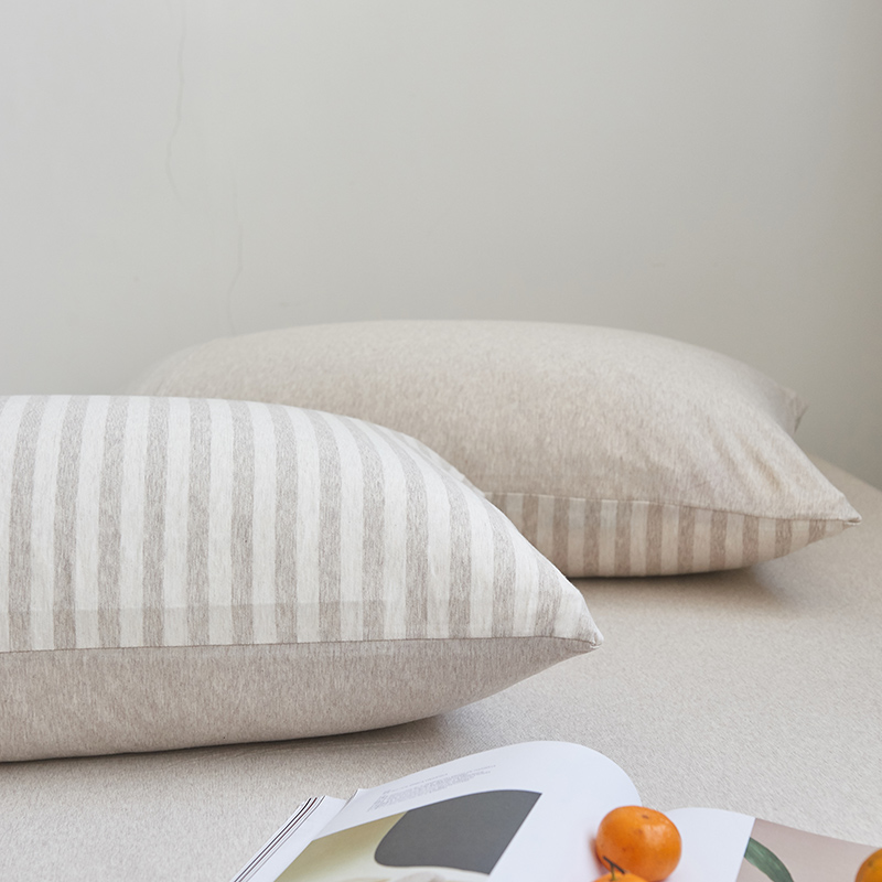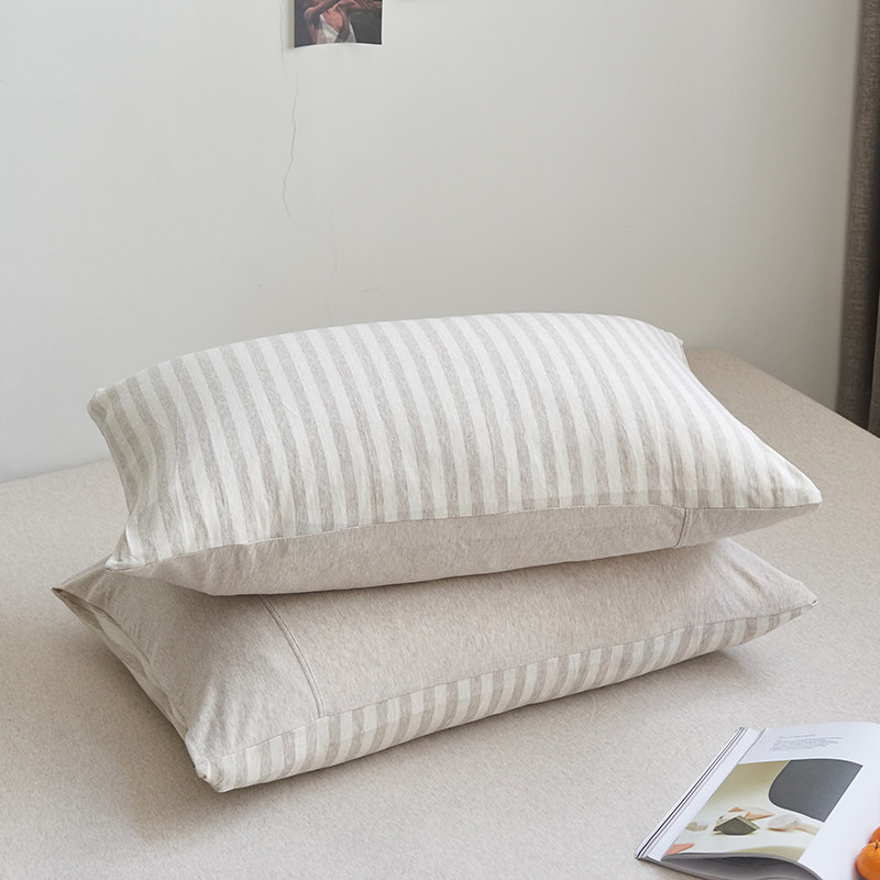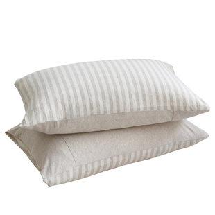 两只装 简约灰蓝色条纹信封式 纯棉平纹枕套一对
