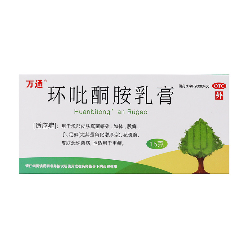 万通环吡酮胺乳膏15g癣症真菌皮炎体癣花斑癣手癣足癣皮肤念珠菌