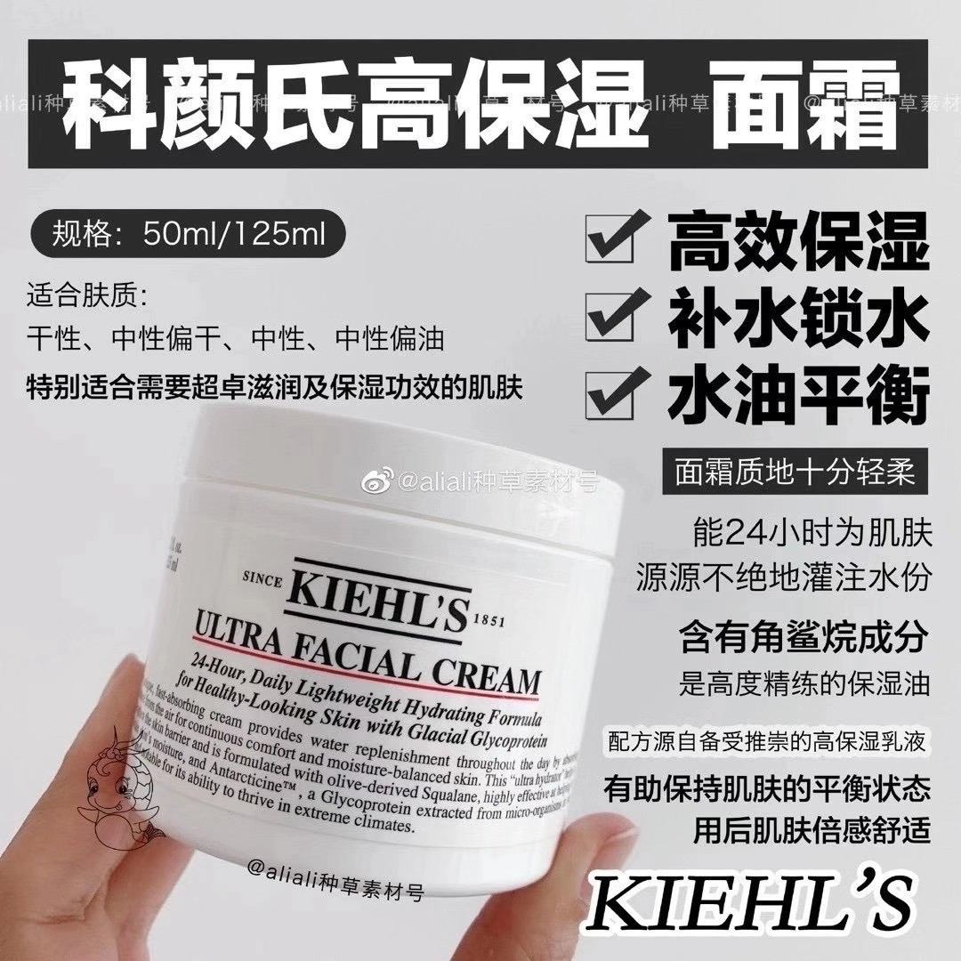 补水滋润 面霜125ml契尔氏科研氏秋冬男女保湿 Kiehl s科颜氏高保湿