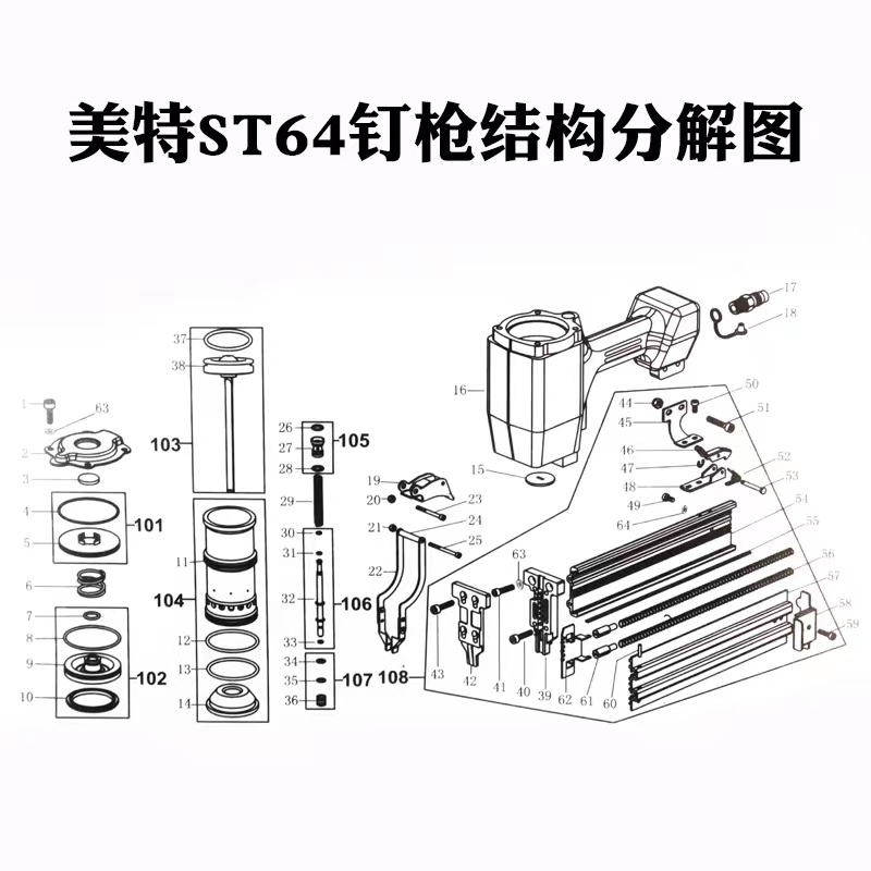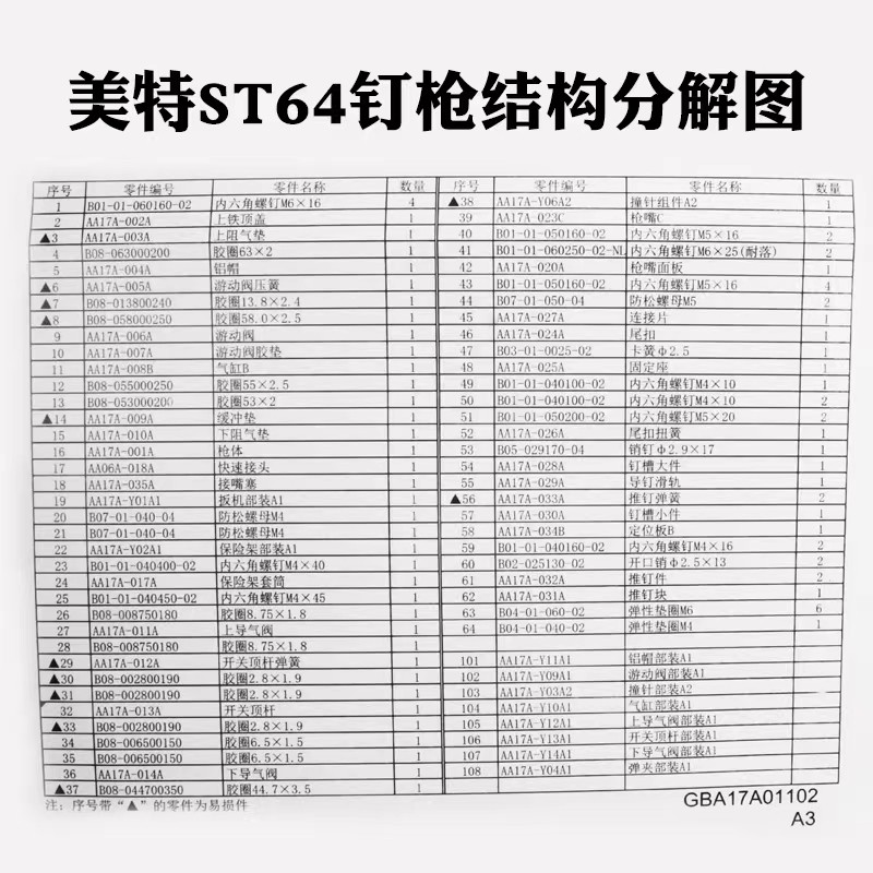 美特ST64排钉枪钢钉枪配件弹夹撞针气缸缓冲垫配件包铝帽枪针枪舌