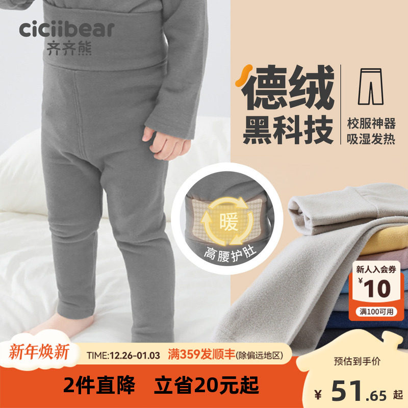 儿童秋裤 齐齐熊宝宝保暖裤 男童护肚裤 打底裤 子女 加绒裤 德绒发热