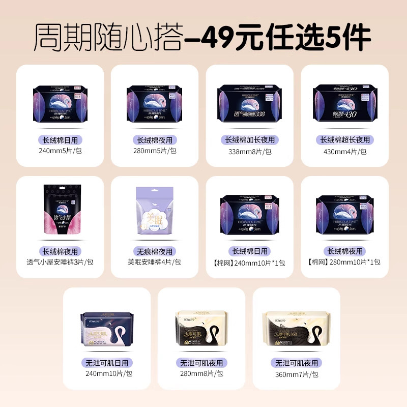 淘淘氧棉天山白消毒级纯棉卫生巾日夜组合迷你 下拉详情更优惠