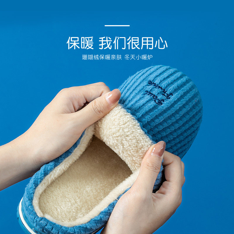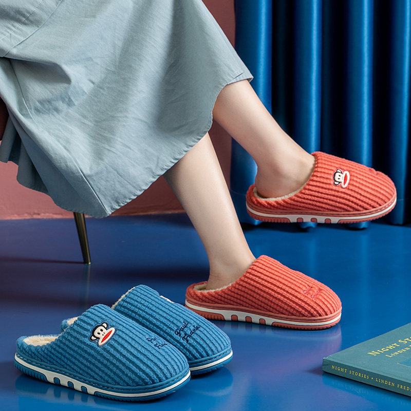 情侣家用男女保暖 毛绒厚底室内防滑家居冬季 大嘴猴男士 秋冬棉拖鞋