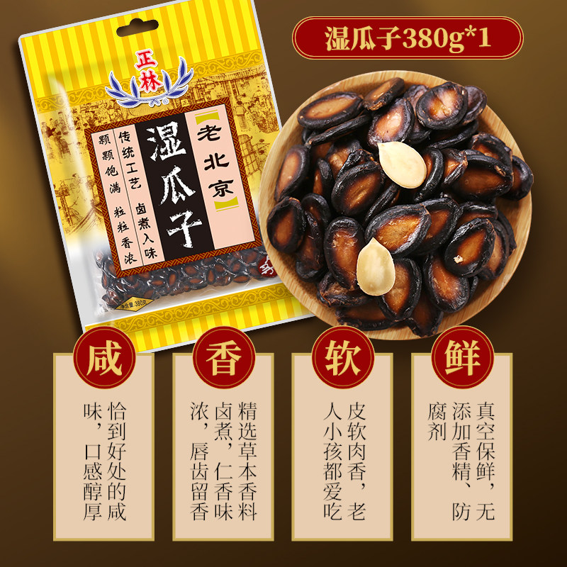 正林老北京湿瓜子咸味水煮五香西瓜子黑瓜子休闲零食坚果380g袋装