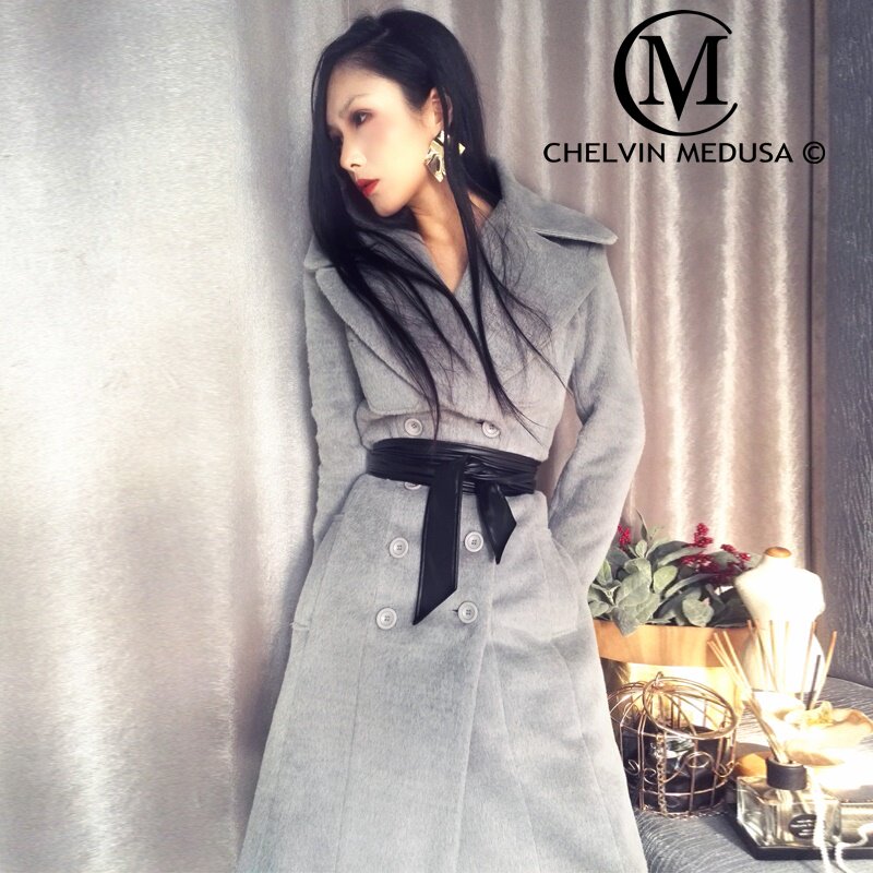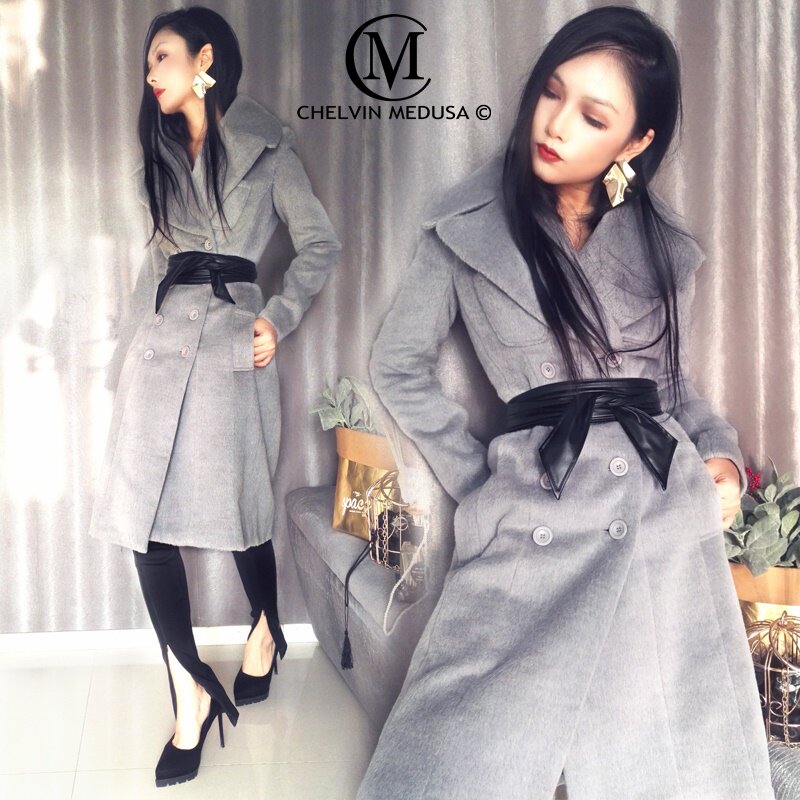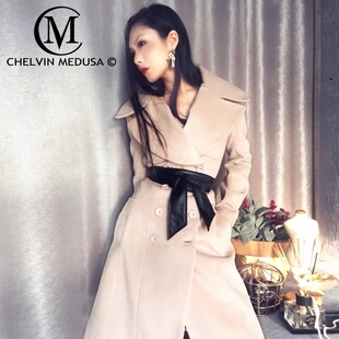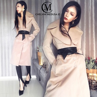 收腰复古毛呢外套女秋冬长款 高端赫本大衣女新款 2021流行清新修身