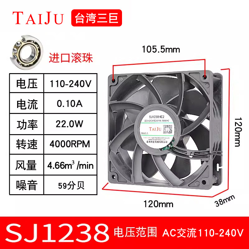 12038 8038 12025 9225 6025 9238 台湾三巨EC散热风扇110V至220V