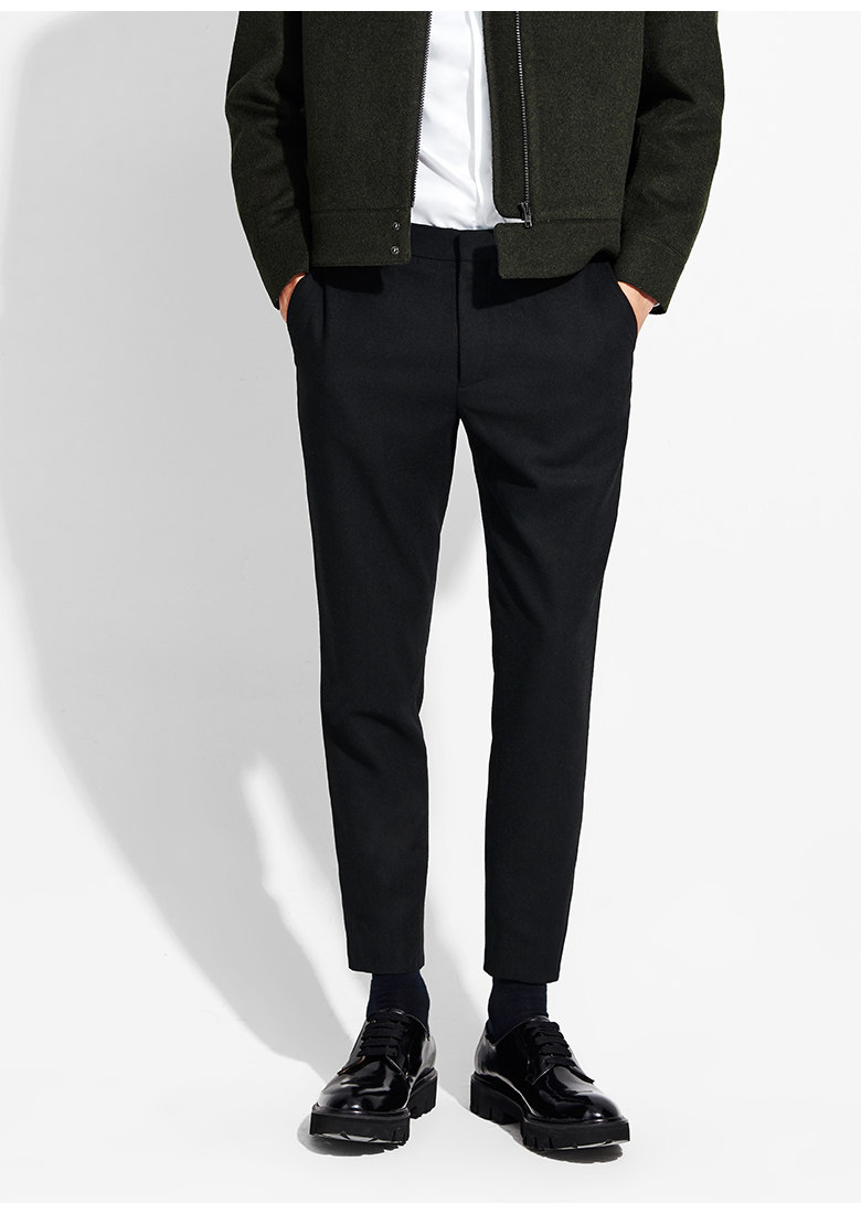 直筒宽松男基础加厚垂感商务修身 YUXIAN余闲秋冬毛呢长九分裤 西裤