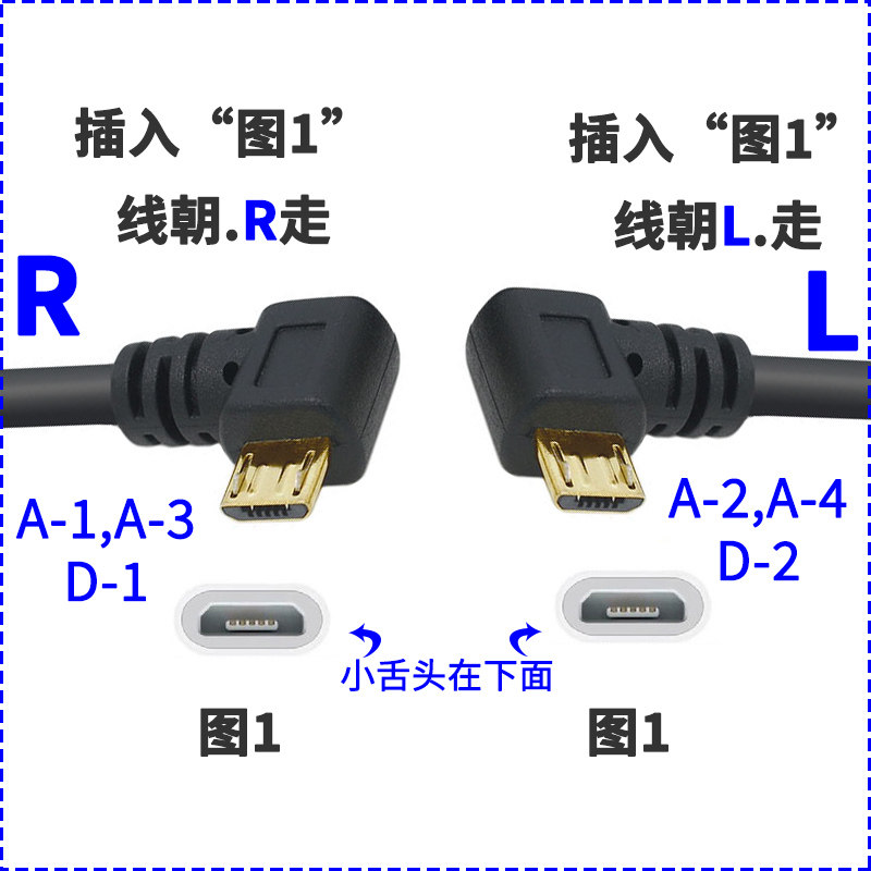 充电数据线micro老式 安卓线双弯头单高速usb快充直角弯头90度通用
