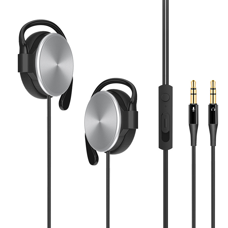 凯悉E01电脑耳机挂耳式 机游戏2米线长双插头耳麦 带麦克风耳挂台式