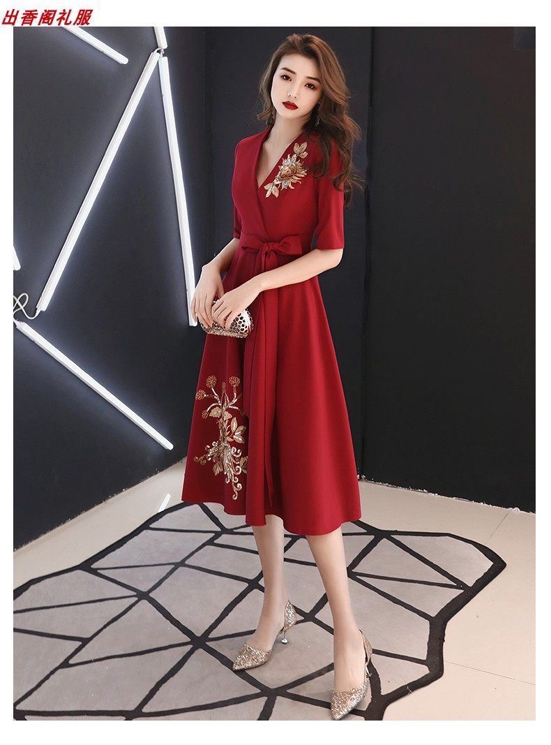 花飞夜 连衣裙宴会晚装 韩国代购 修身 晚礼裙司仪派对及膝裙 韩版