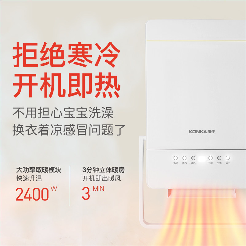 康佳智能浴宝壁挂式 取暖器卫生间挂墙大功率浴霸暖风机速热免打孔