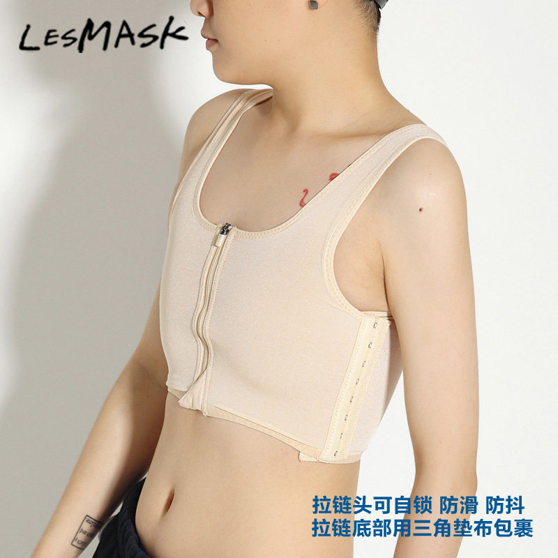 MASK前拉链加排扣短款 束胸内衣 TT束胸衣大胸显小裹胸缩胸大码