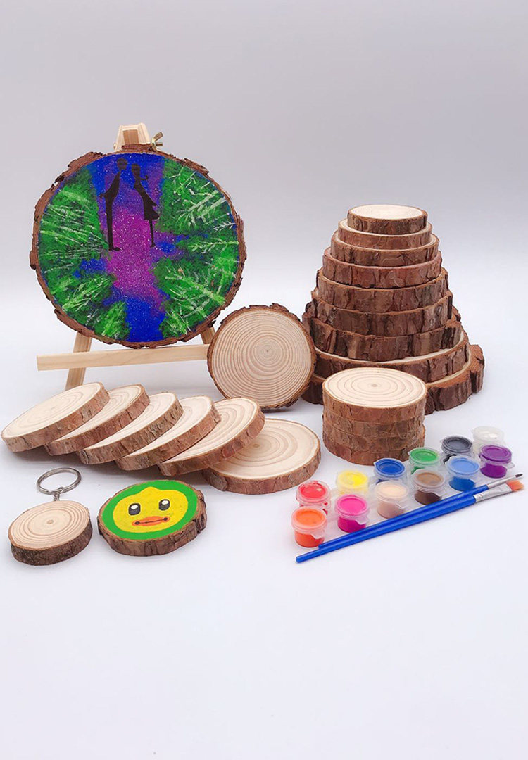 原木片幼儿园手工diy手绘材料实木头画年轮圆形木片原木薄圆木片