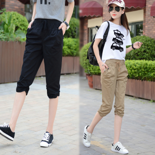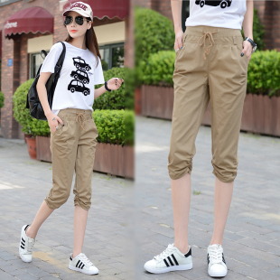 新款 束脚哈伦休闲中裤 弹力七分女裤 显瘦工装 松紧高腰修身 2025夏季