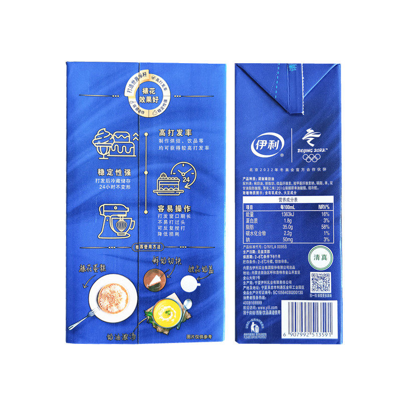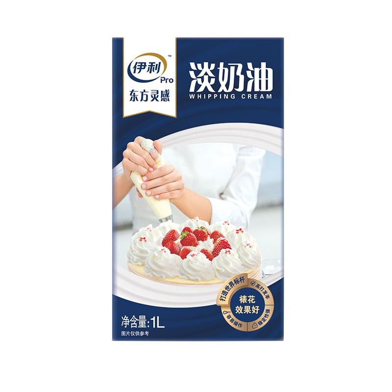 伊利淡奶油1L动物奶油蛋糕裱花烘焙饮品甜点奶盖家用易打发原料