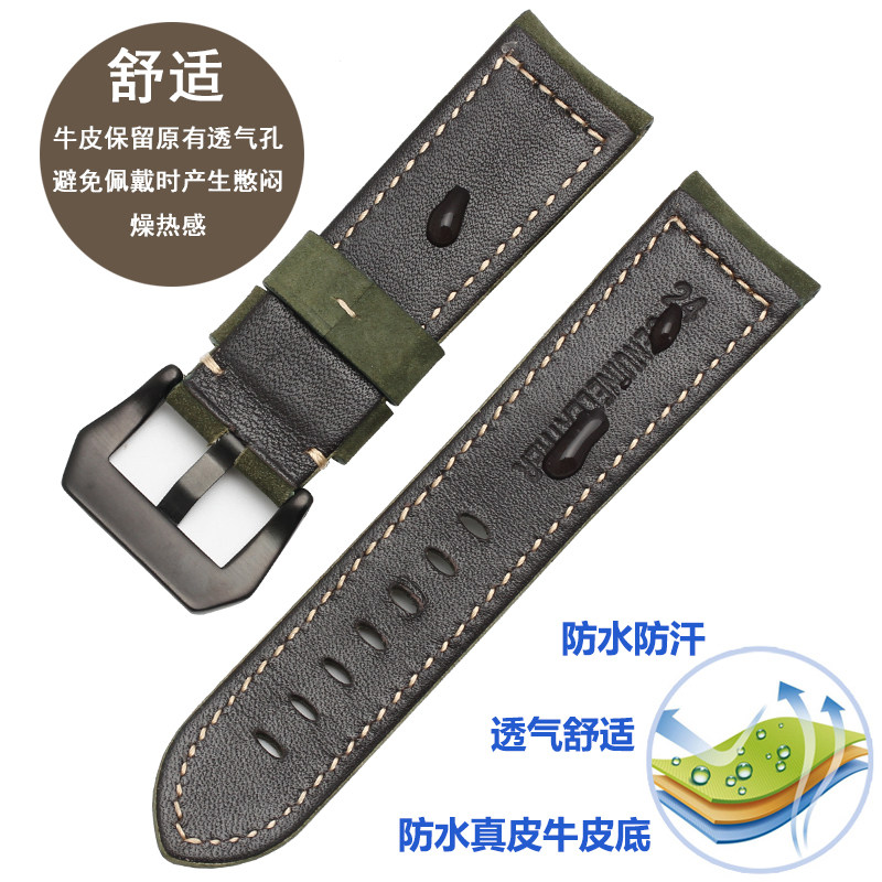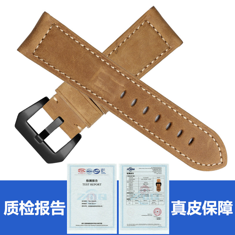 代用Panerai沛纳海表带真皮男PAM111 26mm 441复古疯马皮手表带24