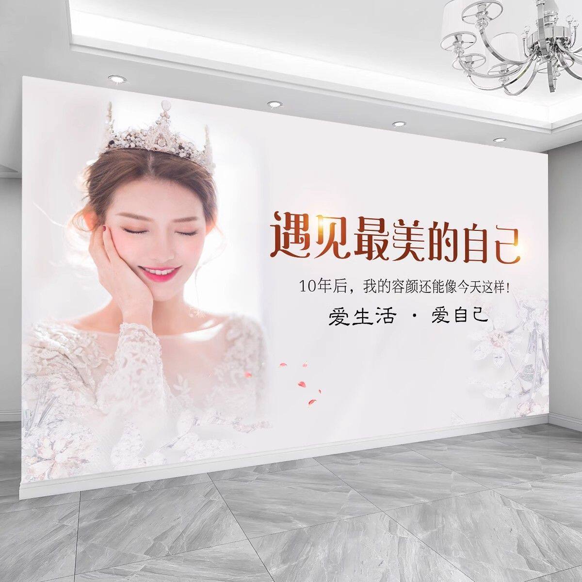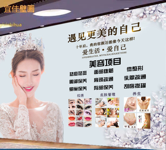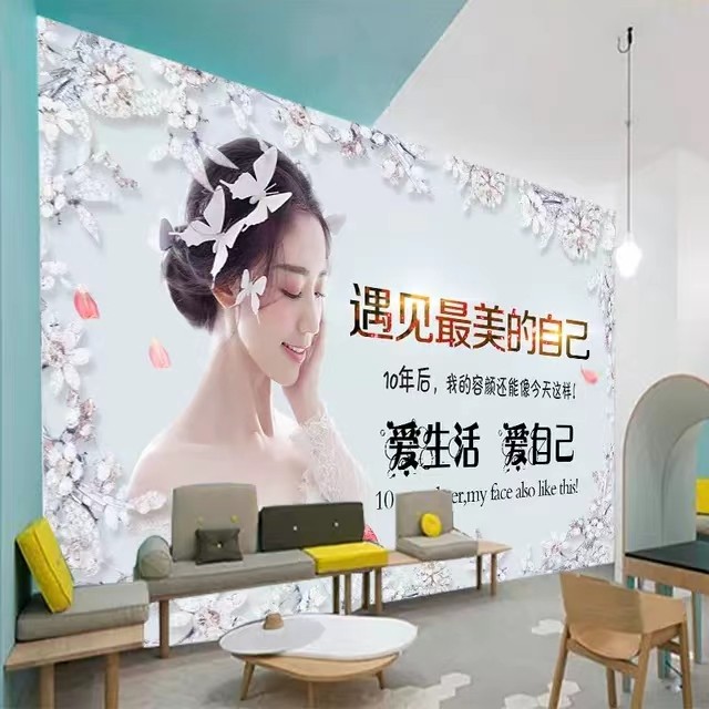 现代简约美容院墙纸美容店前台背景壁纸养生馆墙布抖音直播壁画3D