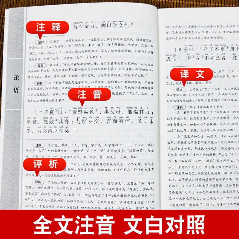 小学生 注音版 原文译文注音注解 论语译注全集完整版 孔子学说文化哲学书籍 论语国学经典 初中生学生论语别裁南怀瑾儒家经典 正版