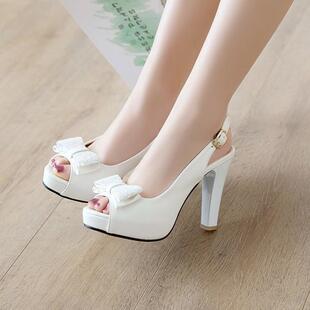 防水台凉鞋 仙女风粗跟鱼嘴凉鞋 新款 子2026夏季 蝴蝶结甜美高跟女鞋