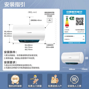 美 80升洗澡卫生间免清洗JE8pro 电热水器家用一级能效变频60