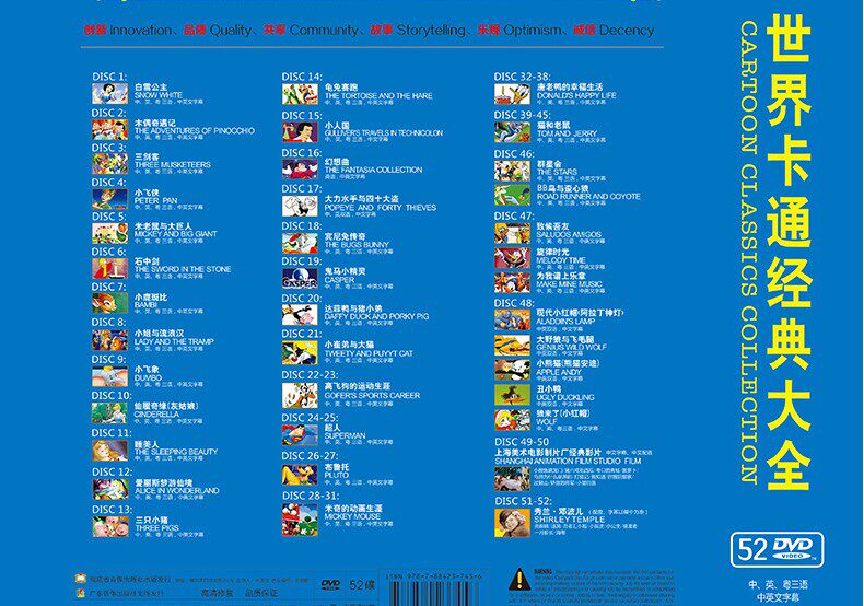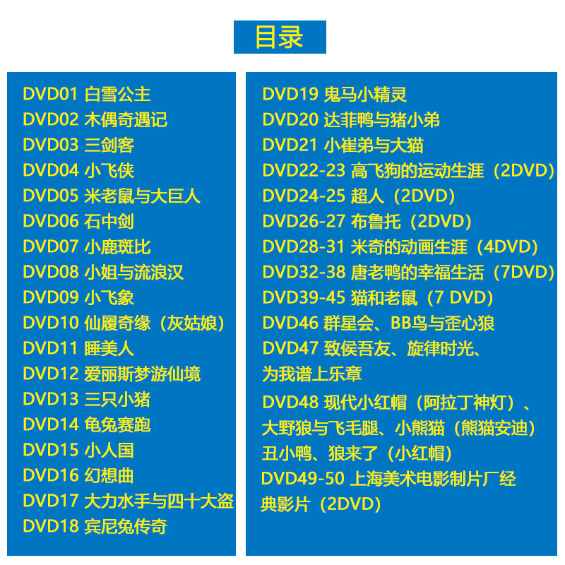 迪士尼幼儿童早教动画片猫和老鼠白雪公主世界卡通经典 大全52DVD