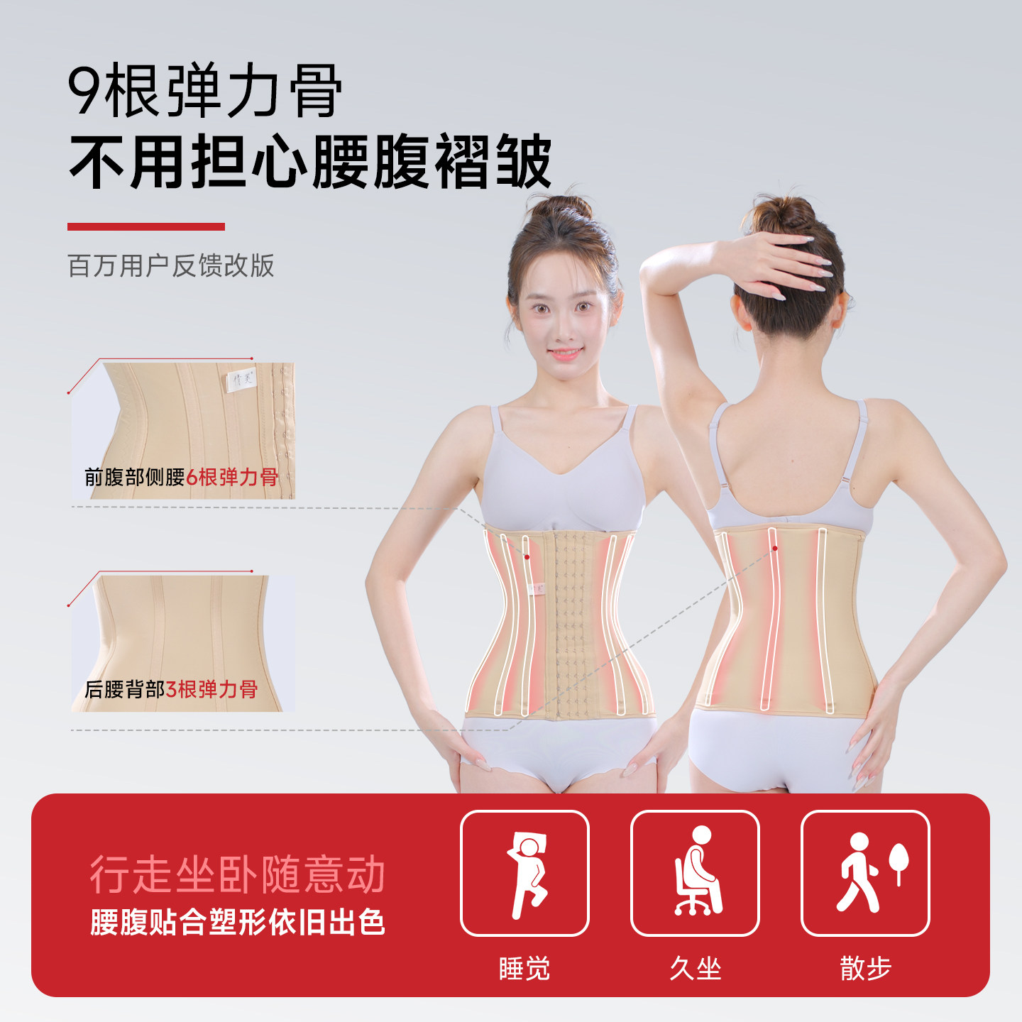 倩美塑腰带收腹束腰项目后塑身衣腰腹抽环吸塑形固定加压腰封腰夹