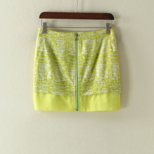 清新绿色拼接款 姐姐优品 2017新款 夏装 后中拉链包臀半身裙女 女装