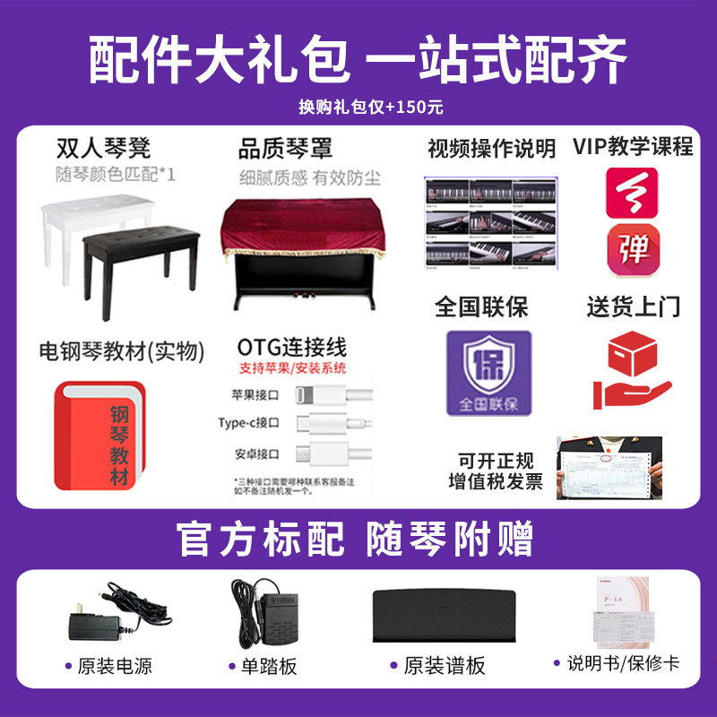 雅马哈电钢琴P225 145BTB重锤88键p145BTB初学者考级便携电子钢琴