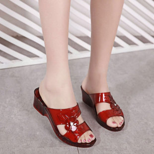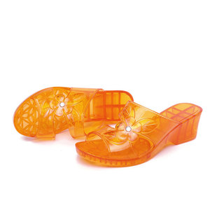 拖鞋 水晶塑料拖鞋 果冻镂空洗澡厚底防滑防臭易洗居家软胶坡跟老式