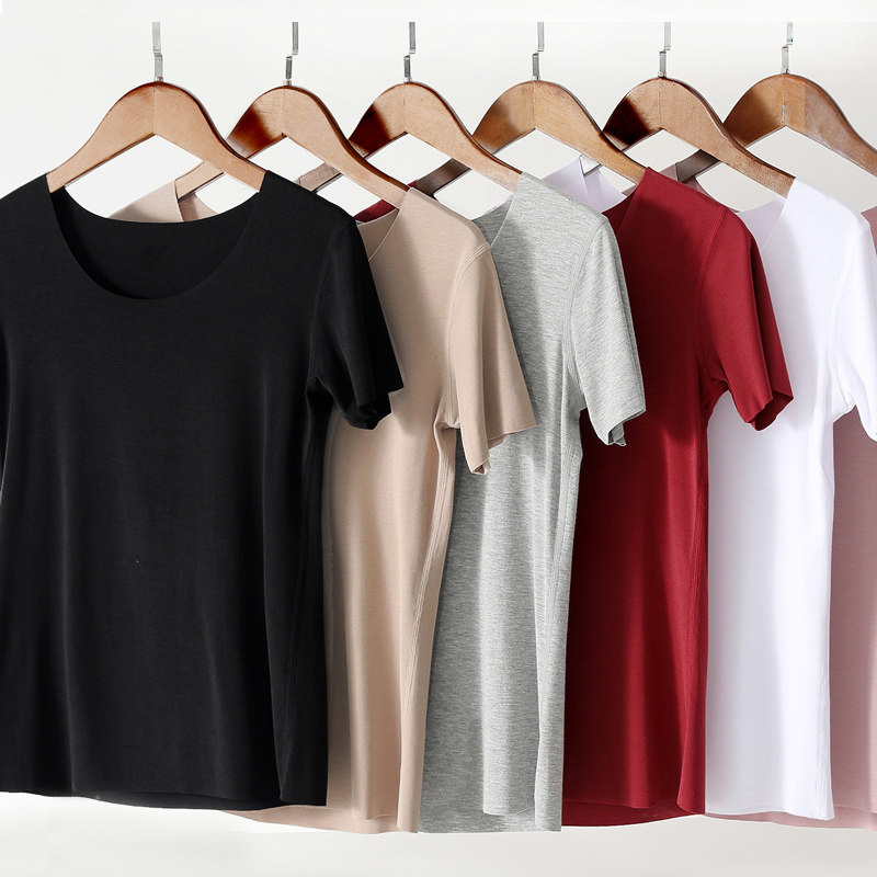 学生莫代尔大码 夏装 修身 半袖 T恤女 短袖 上衣无痕打底衫 女2019新款