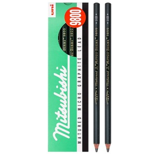 日本uni三菱铅笔9800DX绘画素描炭笔2H 10B绘图学生美术六角杆木头铅笔12支 绘画考试必备