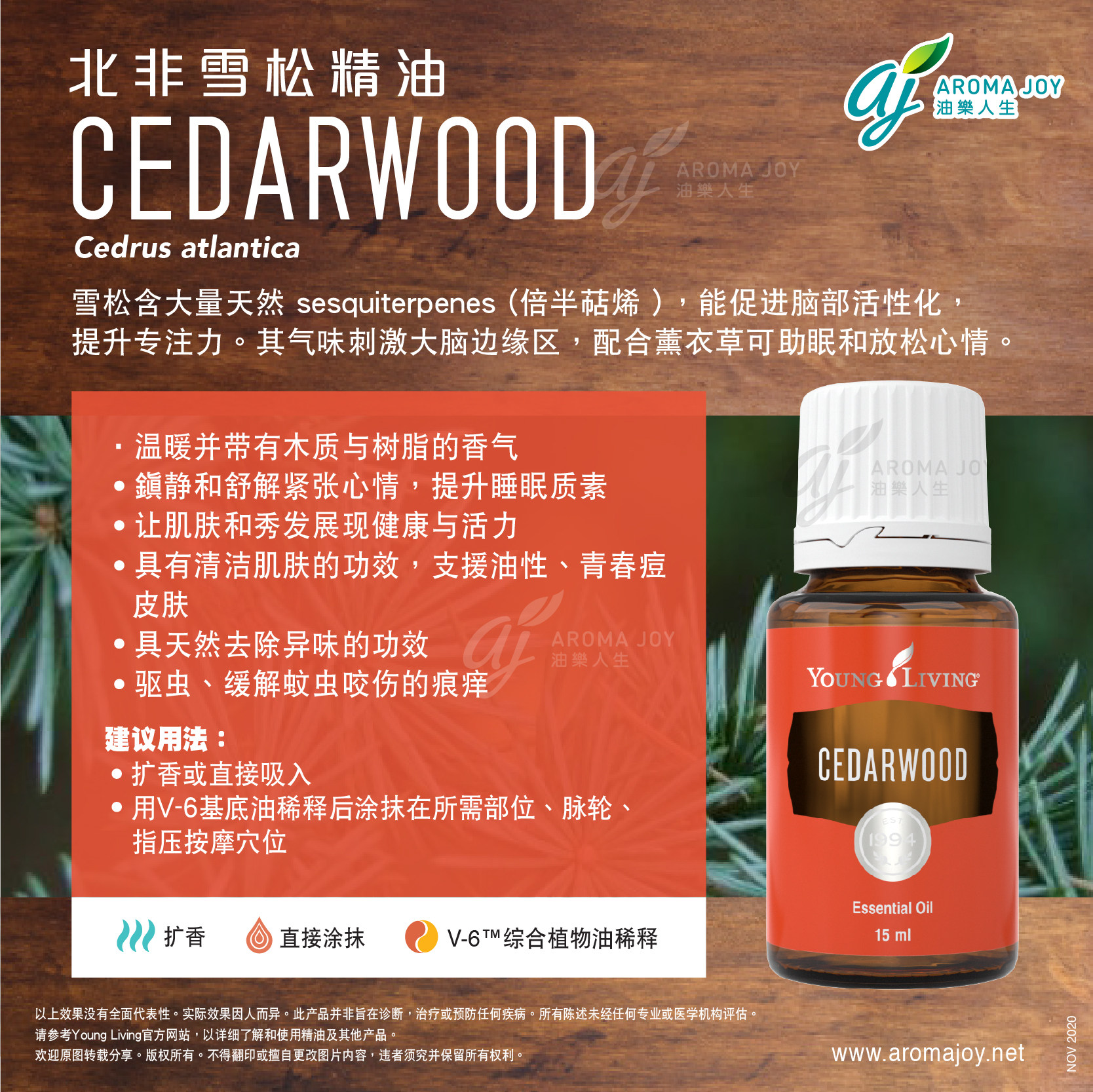 美国Young living悠乐芳雪松精油Cedarwood舒缓按摩天然秀发光泽