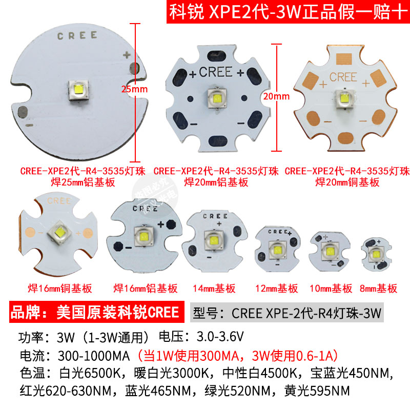 科锐CREE 3535 XPE2 2代3W LED大功率灯珠手电光源红绿蓝 xpe 原装