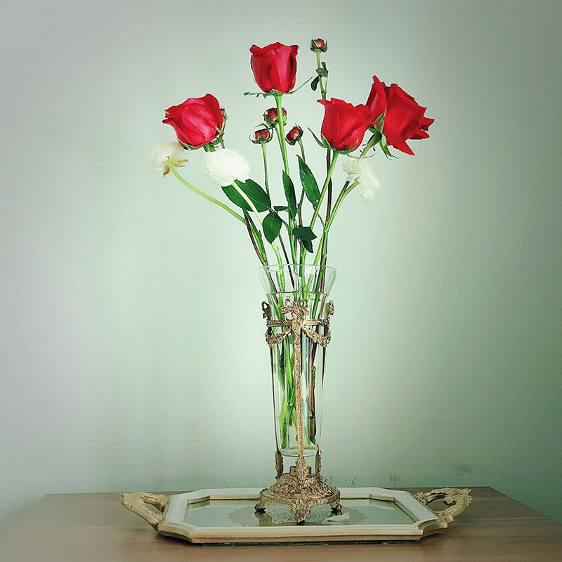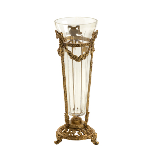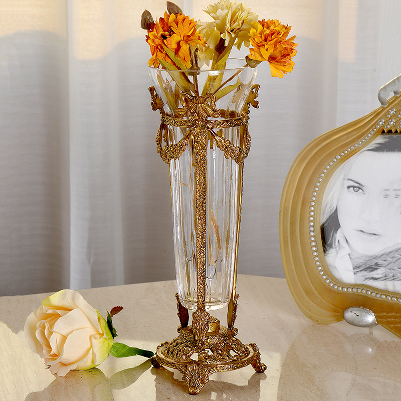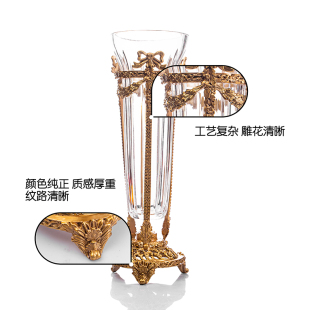 欧式 水晶玻璃镶铜插花花瓶家居饰品桌面摆件客厅高档奢华花器 美式