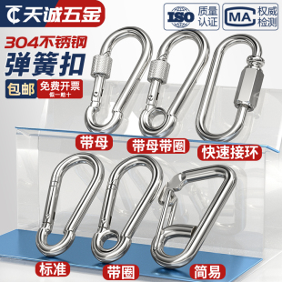 304不锈钢弹簧扣登山扣保险扣钥匙扣葫芦扣螺母弹簧带圈扣狗链扣