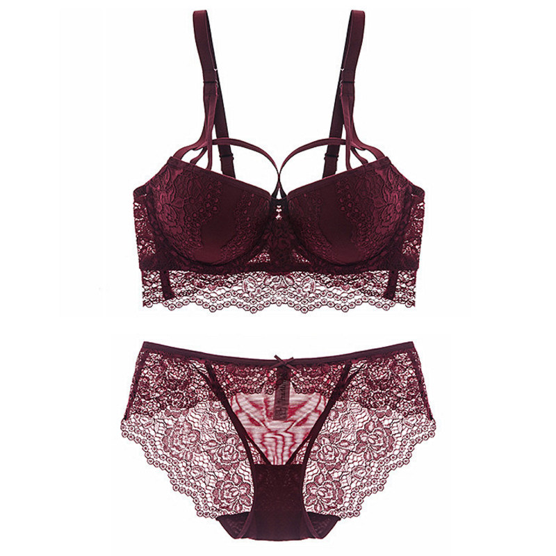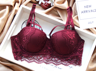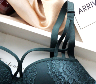 墨绿欧美性感聚拢文胸套装 白 三排扣女士少女加厚内衣bra 酒红 黑
