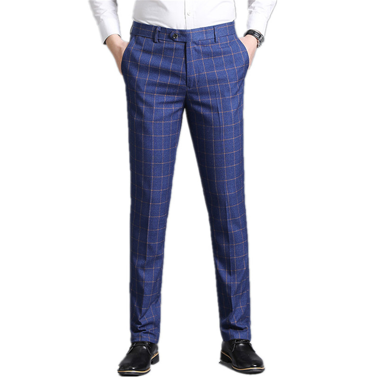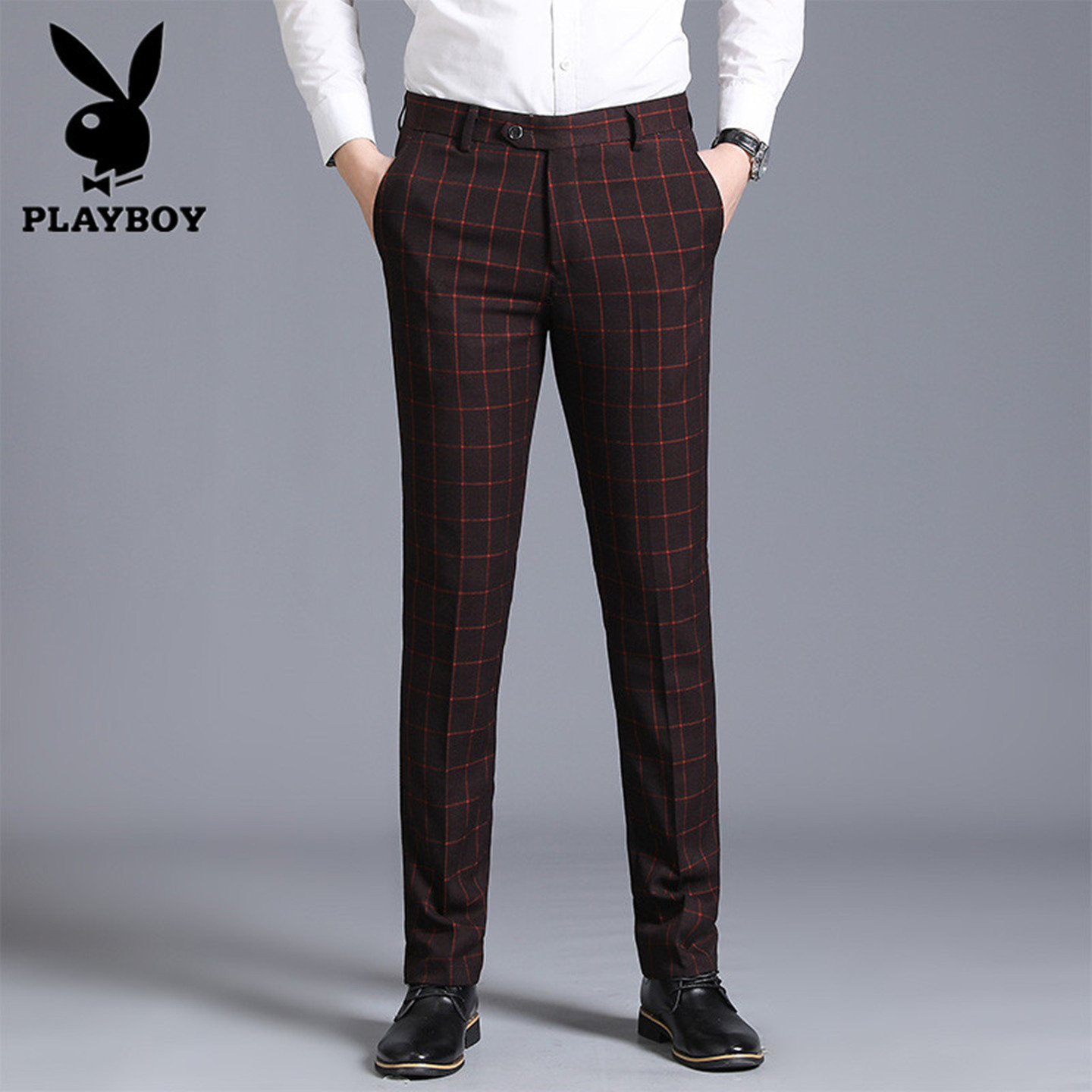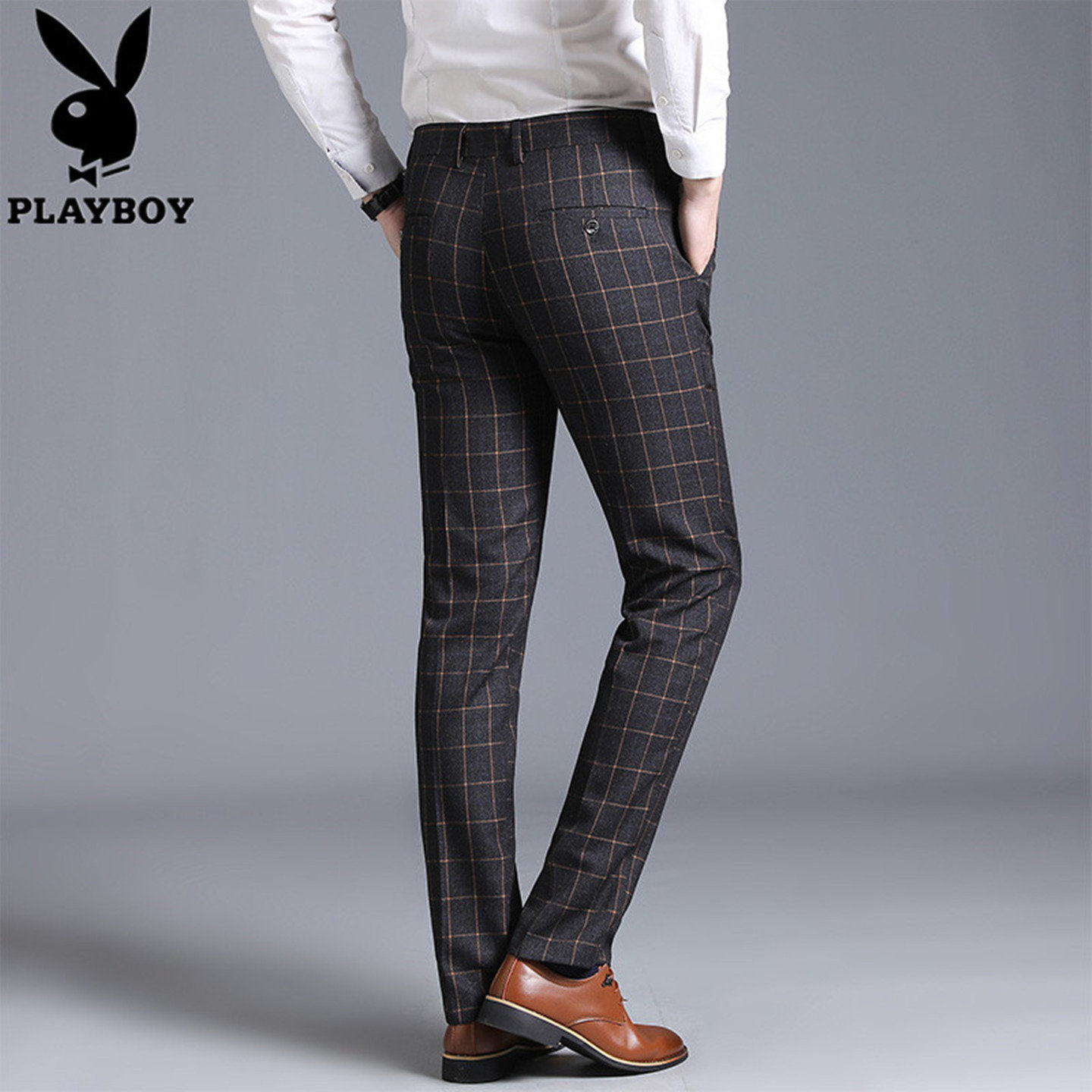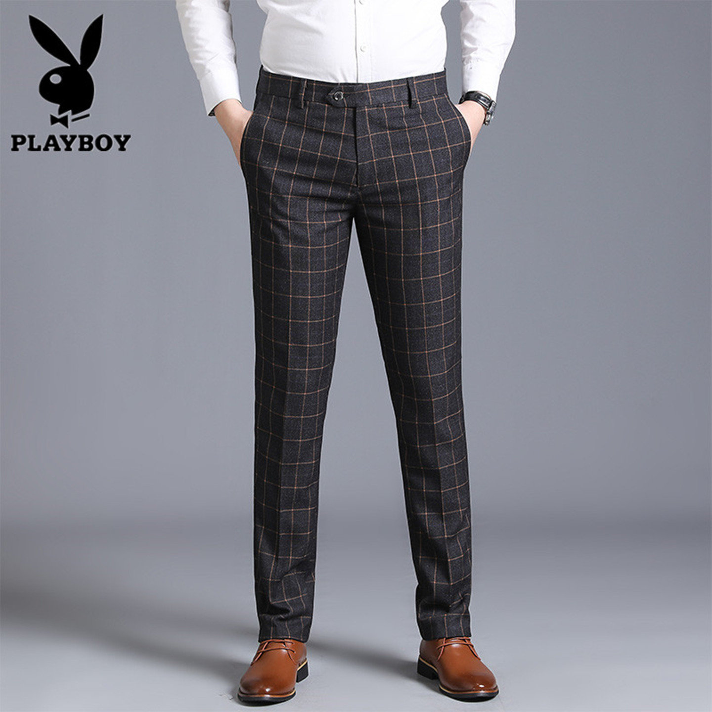 裤 免烫商务休闲长裤 男格子修身 小直筒青年男士 潮 韩版 花花公子西装