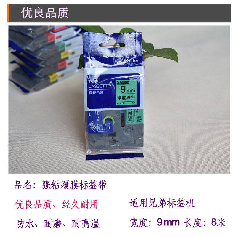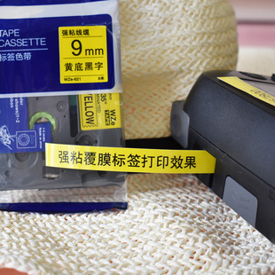 标签打印机色带9mm黄底黑字WZe P300BT 621适用TZe兄弟牌打标机PT