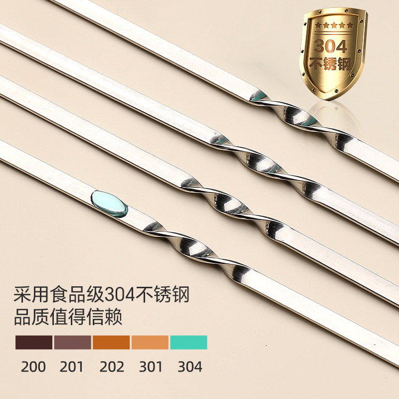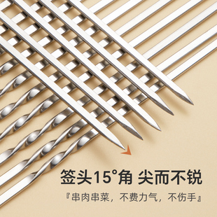 烧烤签子不锈钢羊肉串烤肉铁钎子食品级户外烤串扁签商用必备工具