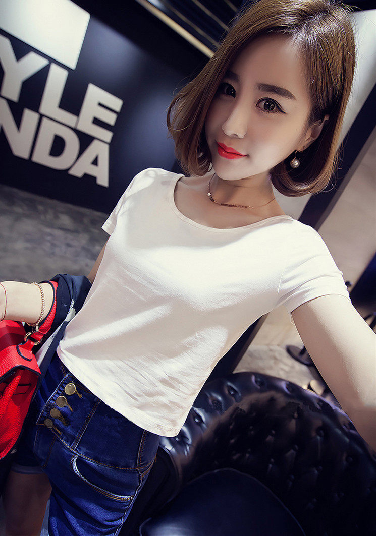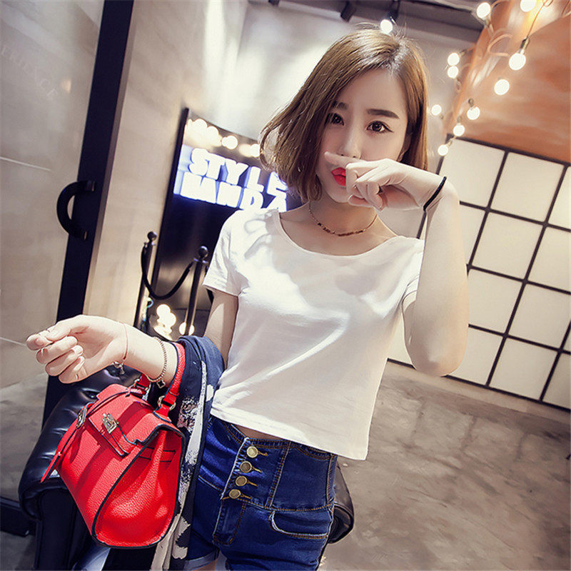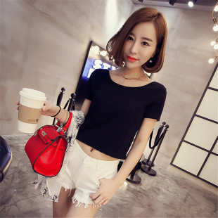 包邮 漏肚脐高腰紧身打底衫 2017夏露脐短款 T恤修身 女上衣潮 短袖 9.9