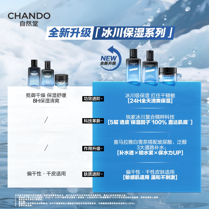 礼物 男士 自然堂男士 露补水保湿 专用水乳三合一护肤品 冰川保湿