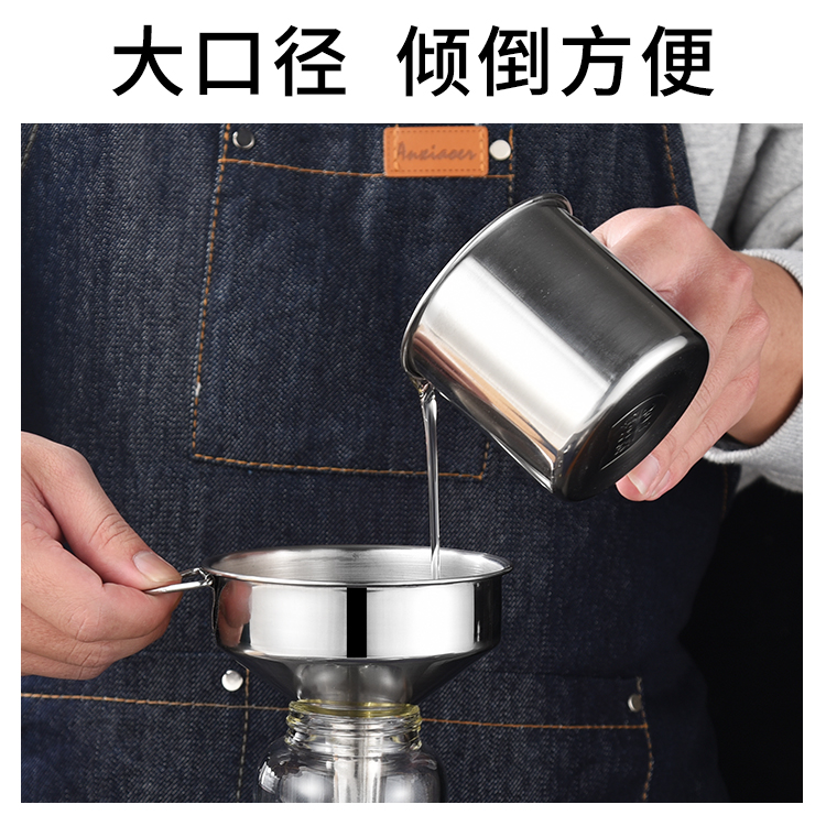 加厚不锈钢挂式 厨房家用大号宽大口漏斗 带过滤网油漏酒漏可挂式