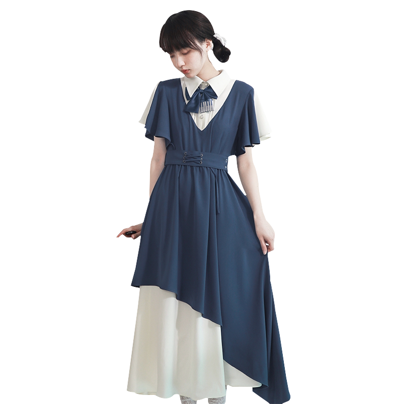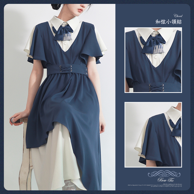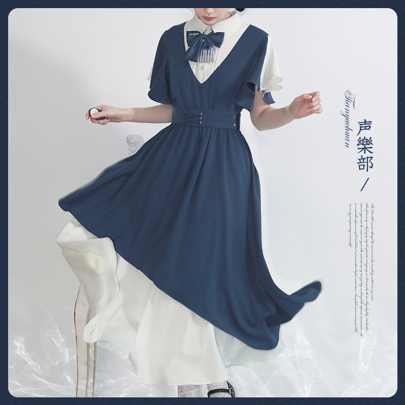 天羽川原创声乐部连衣裙夏秋仙女设计感小众女生学院风雪纺长裙子