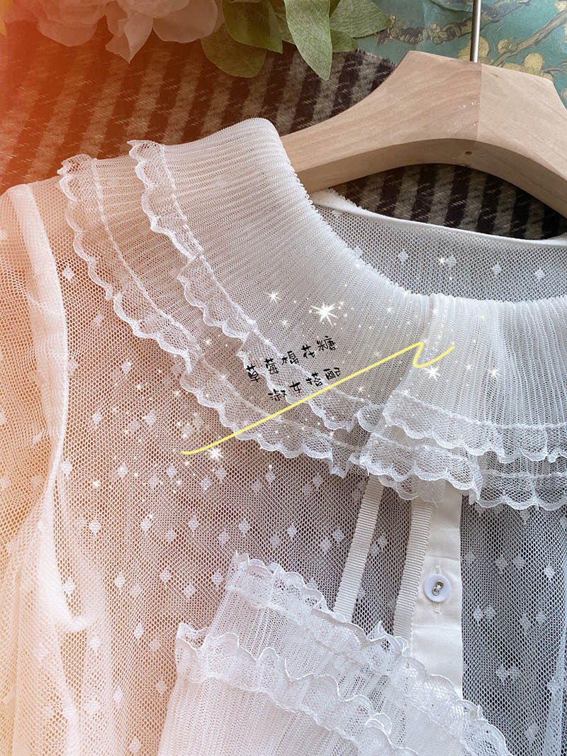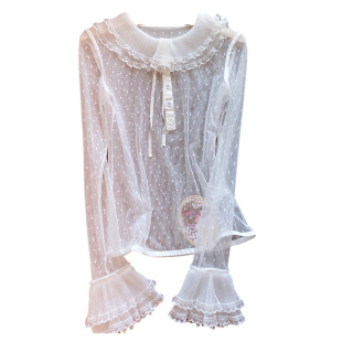 打底衫 2024秋冬新品 长袖 内搭上衣喇叭袖 女 超仙翻领娃娃领镂空薄款