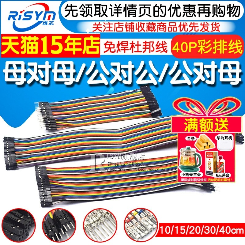 40CM 杜邦线母对母公对母公对公40P彩色排线连接线公母线10