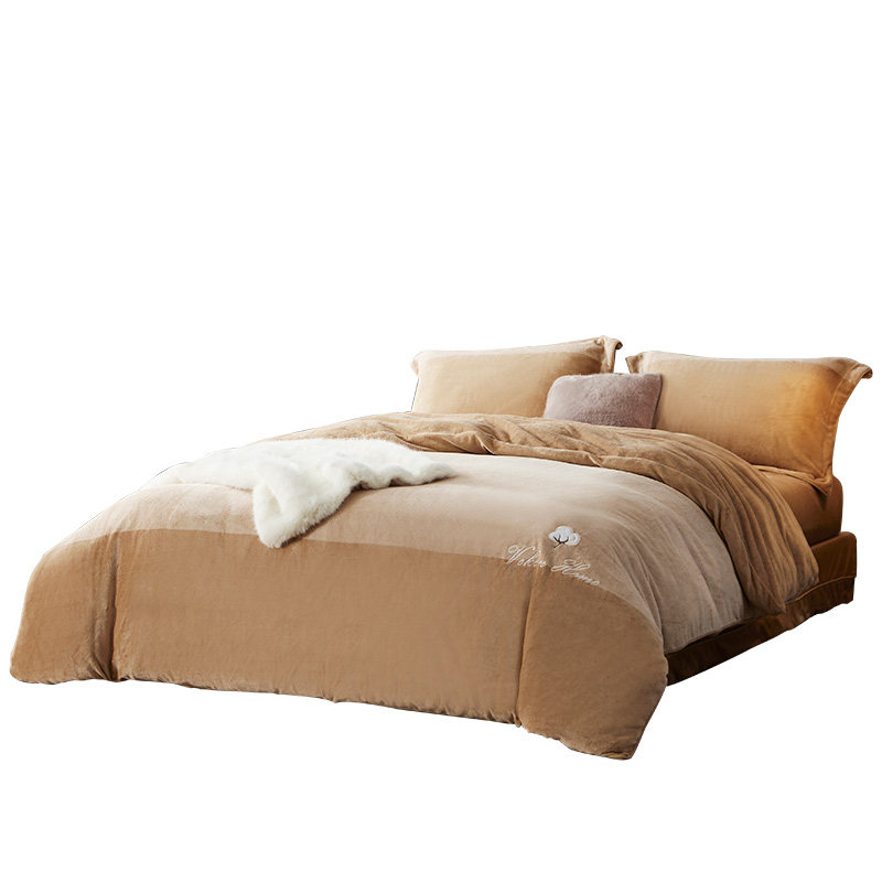 维科家纺专柜同款 保暖棉拉舍尔暖睡康四件套紫灰床上用品 纯色冬季