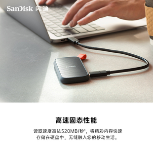 闪迪E61固态移动硬盘2t三防便携ssd外接1tb大容量手机电脑两用